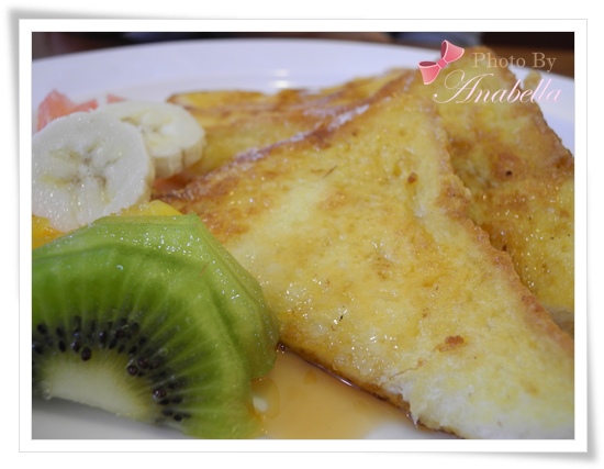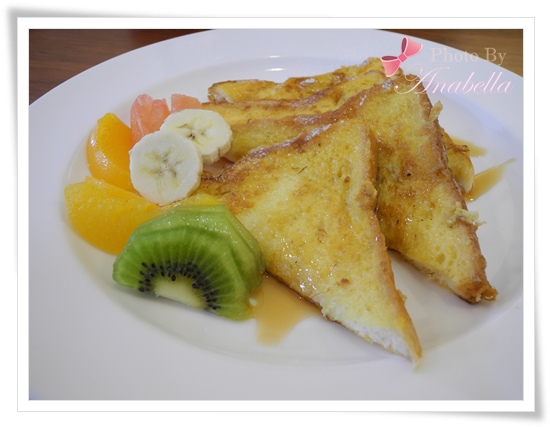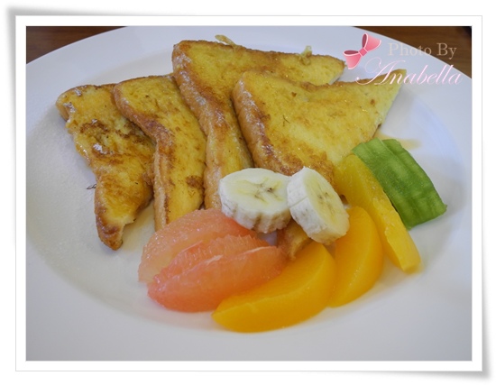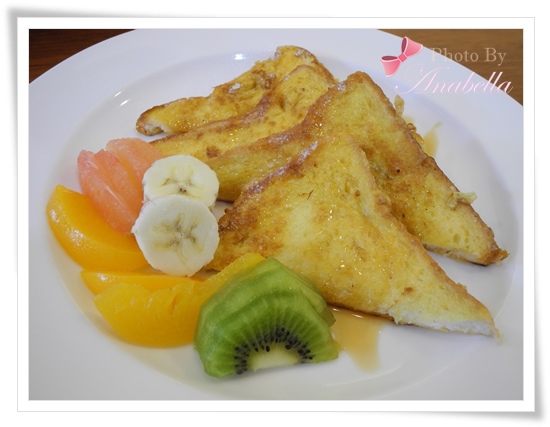 法式煎吐司吃起來柔柔軟軟的~而且上面還淋上楓糖
